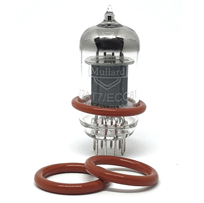 20mm Red silicone rubber damper ring suitable for all 22mm diameter preamp tubes such as 12AXX or EL84 power amp tubes. Reduces tube rattle and microphonics in tubes.